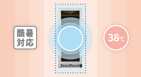 ガラス扉よりも断熱性に優れた鋼板扉によりカーヴに近い環境を再現する70本収納モデル